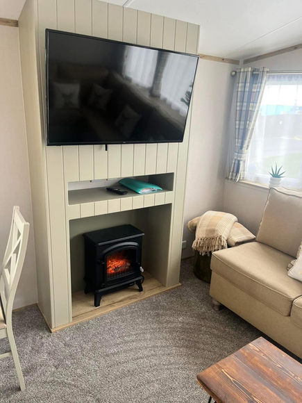 Large wide caravan for spacious moving around including a large secluded decking area with seating and a gate